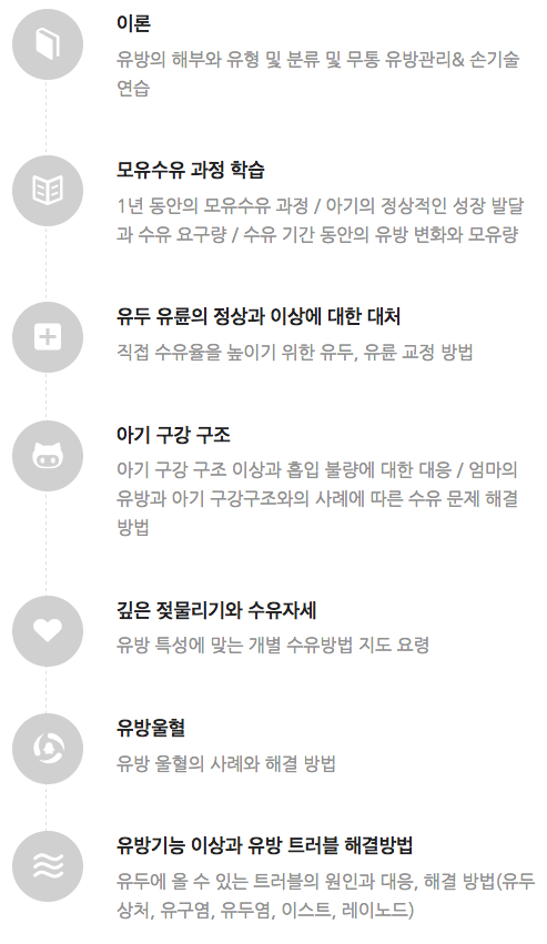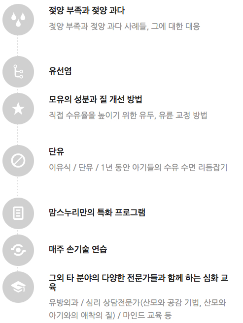 ACADEMY 맘스누리는 모유수유 전문가로 만들어드립니다. 대상 (필수 조건 : 간호사/조산사 자격자) 신규 모유육아상담실 개설 운영을 원하는 간호사/조산사 산부인과 병원이나 조리원에 근무하는 모유수유 전문가 소아과, 산부인과 근무자 우대 모집 안내 모집 기간 : 수시 모집 모집/선정 절차 : 1차 서류 심사 → 면접 → 교육 대상 확정 MLPC과정 회차별 프로그램 맘스누리 모유육아 최고전문가 양성과정의 프로그램을 회차별로 소개합니다.